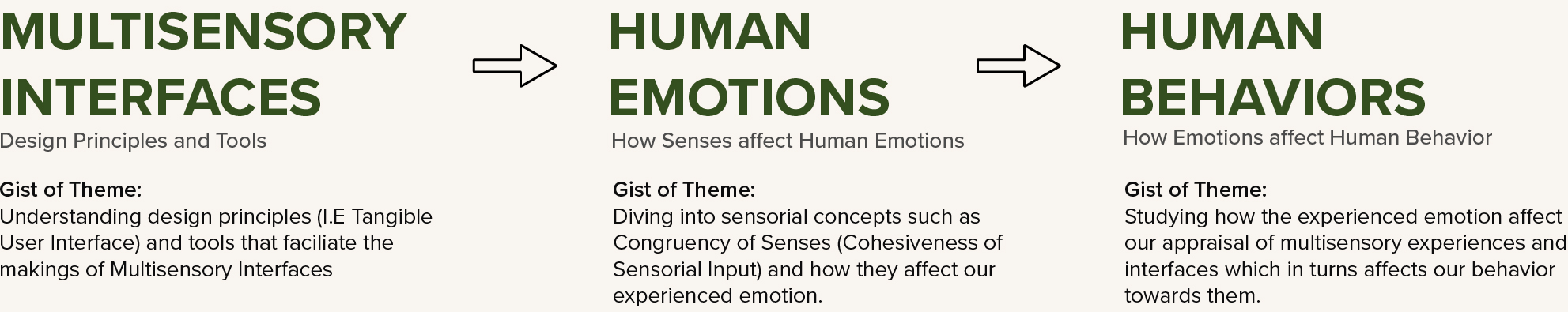 Coming back from a 3 month break where I have worked tirelessly at an advertising agency, focusing mainly on content creation through Visual Design and Photography, I have to adapt back my focus onto my research topic which is about a different field of expertise. Carrying forward the topic from my year 2 research log, I will be revisiting the Design of Multisensory Interfaces and its impact on Human Emotions and Behavior.