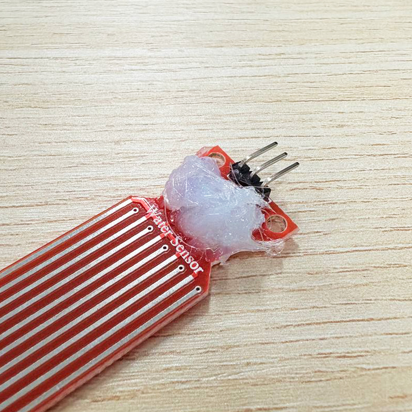 Hot glue on PCB of sensor