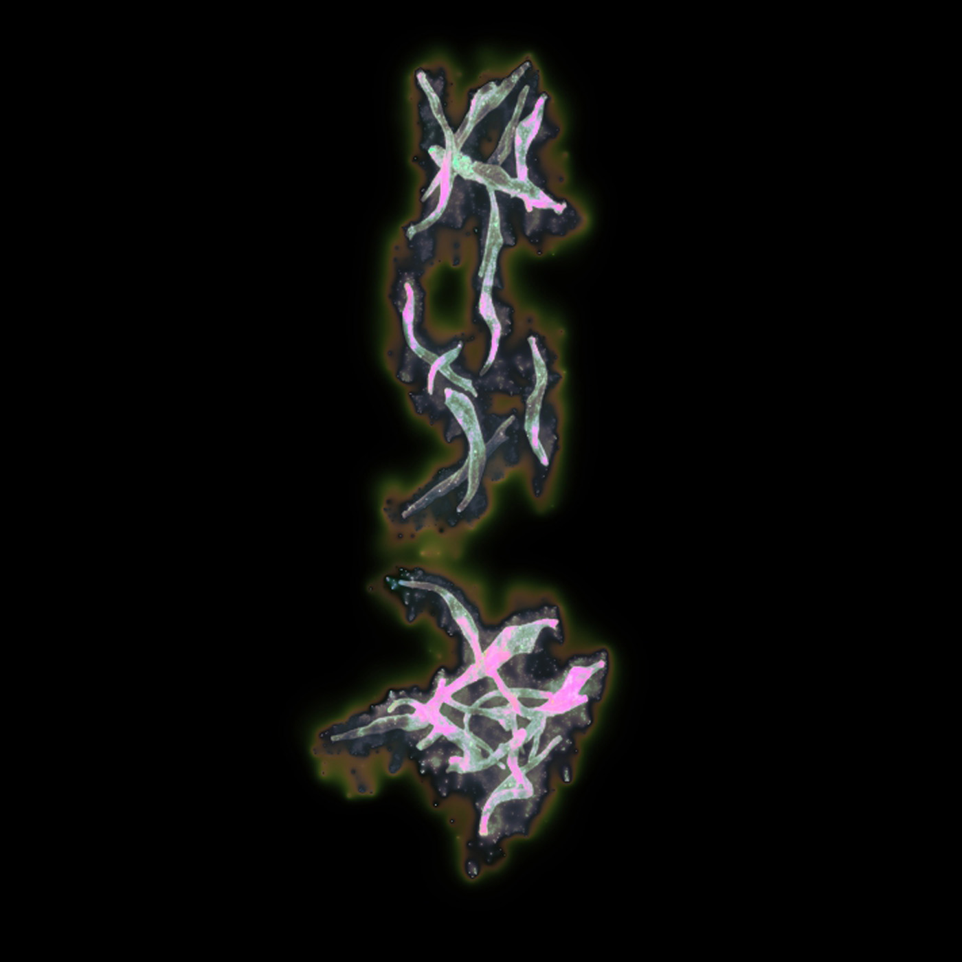 Particles recolored using Noise TOPs, with another instance of the source image recolored too and overlayed on top