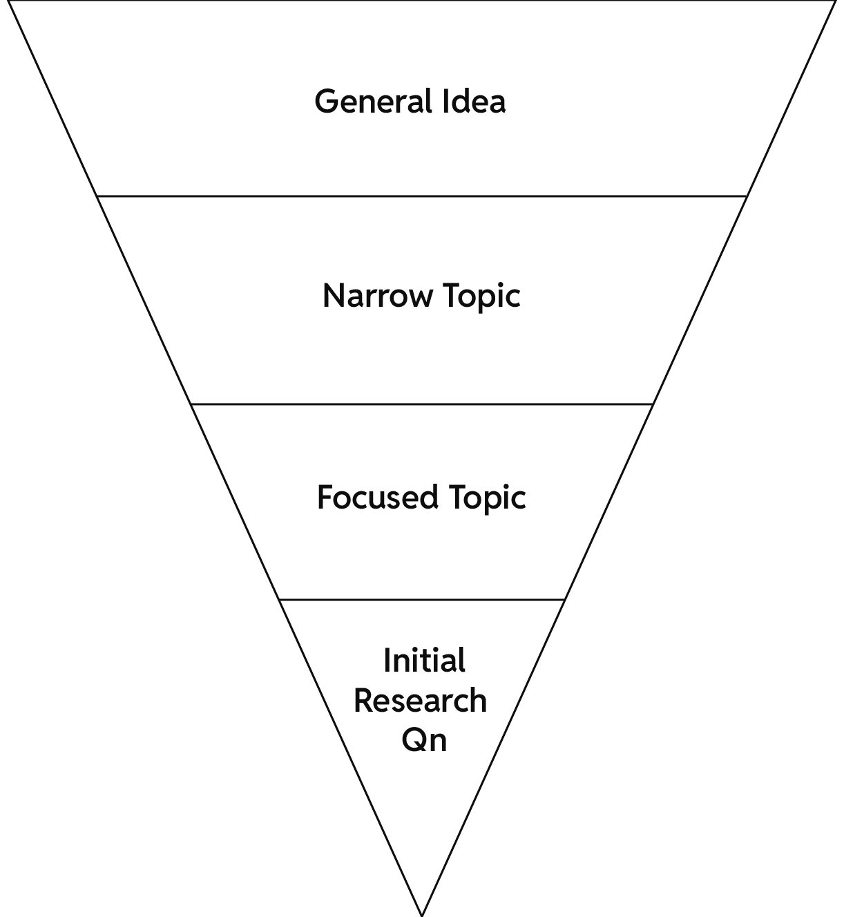 After that quick reflection on my interests, I head back to my current topic and see how It can work together. First off, I tried out the Funnel Technique, which seeks to narrow down broad ideas to a more focused topic.